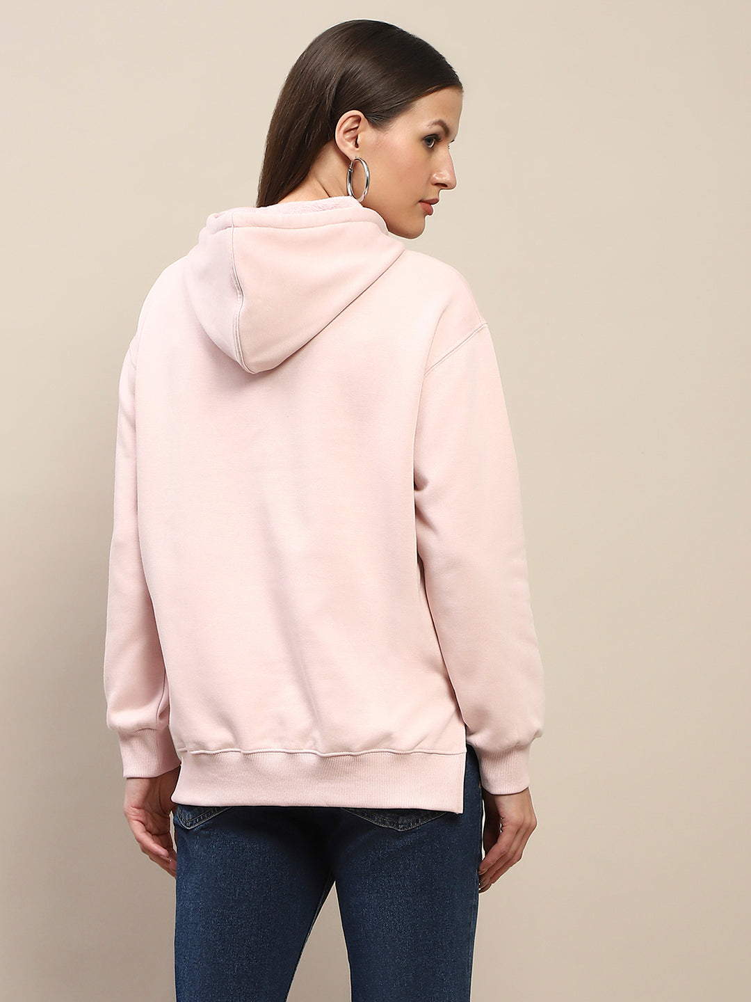 Madame Cotton Placement Print Hooded Dusty Pink Sweatshirt