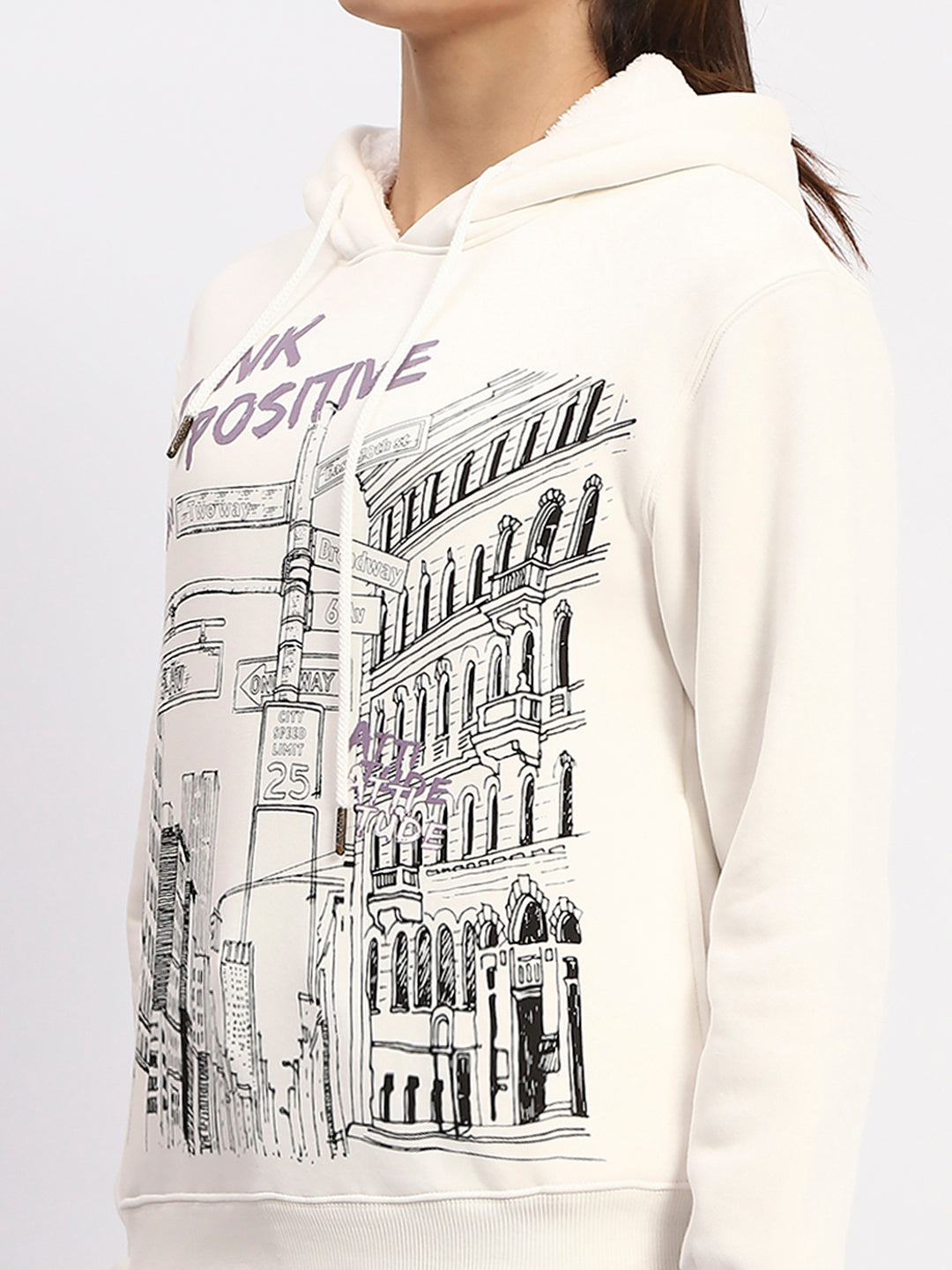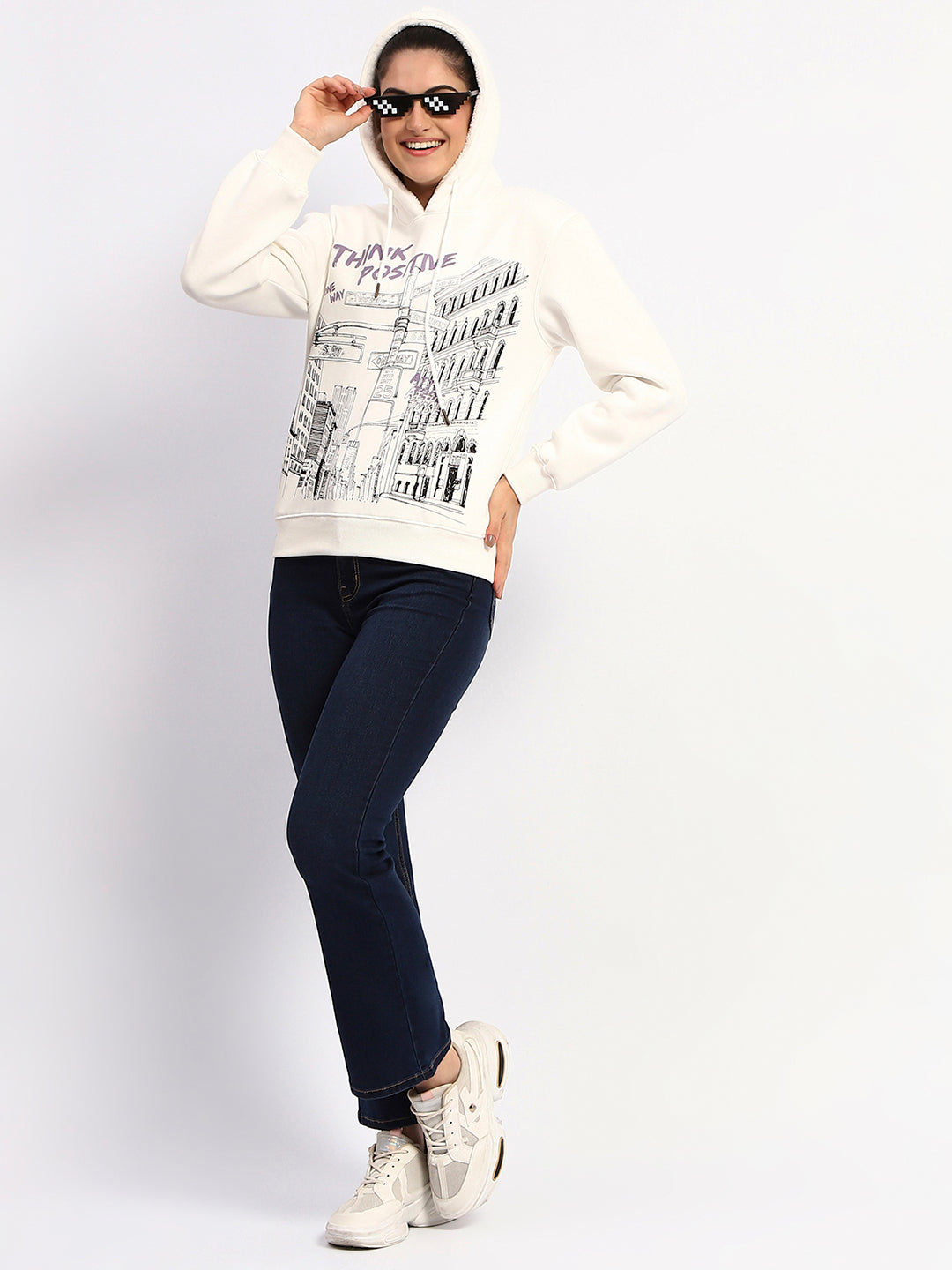 Madame White Graphic Printed Hoodie Sweatshirt
